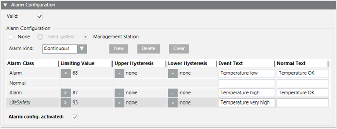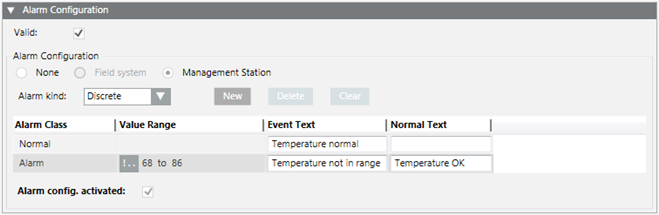 For an alarm to be recognized it must be permanently subscribed to. A change of value on the automation station triggers a COV notification and sends it to the management platform. An alarm event is triggered and forwarded to other recipients when a deviation from a set threshold is recognized.