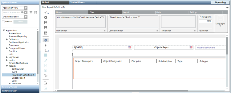 • Graphics Filter: Displays the graphics and viewports of the object that is passed as the name filter to the report.