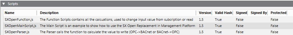 4. The example scripts SXOpenMainScript, SXOpenFunction, SXOpenParser are displayed.