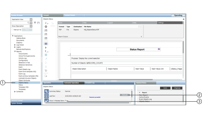 You can generate a selected report automatically by clicking Execute in the Extended Operations tab of the Contextual pane.
