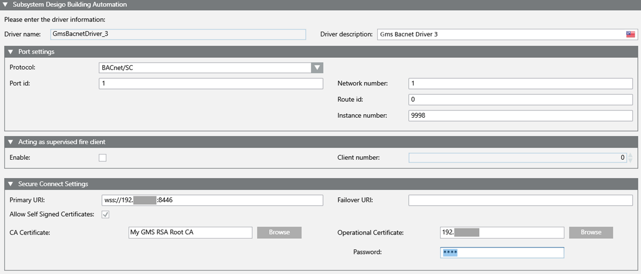 - In the Subsystem Desigo Building Automation expander, enter a name in the Driver description field.